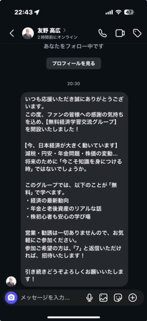 現在確認できている偽アカウントとメッセージ